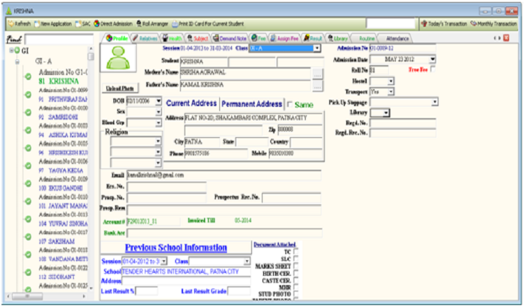 Routine, Library and Attendance also. User can also view present day fee collection/entire month collection.