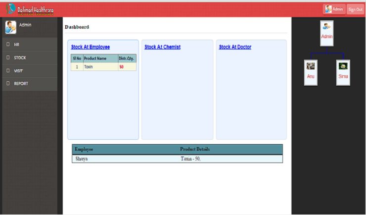 This is dashboard for admin where he can see status of their stock i.e. where their stocks are and the quantity.