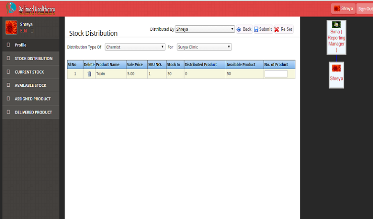 This is the page from where admin can assign targetor can say distribute his stock among employees.