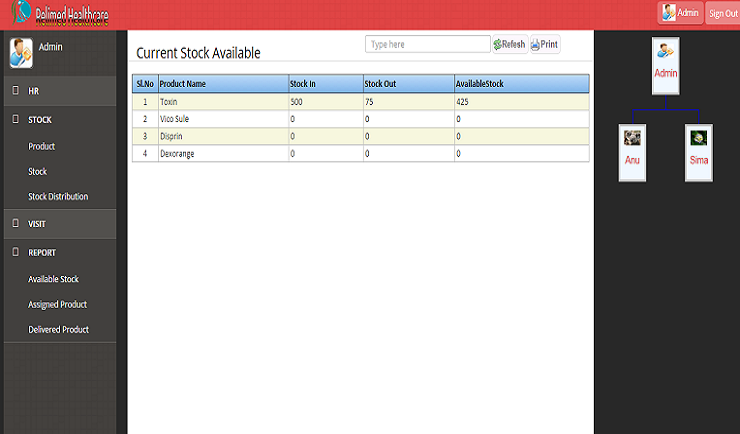 When employee login. they can view their stock and maintain their deliveris and current stock of their client as well.